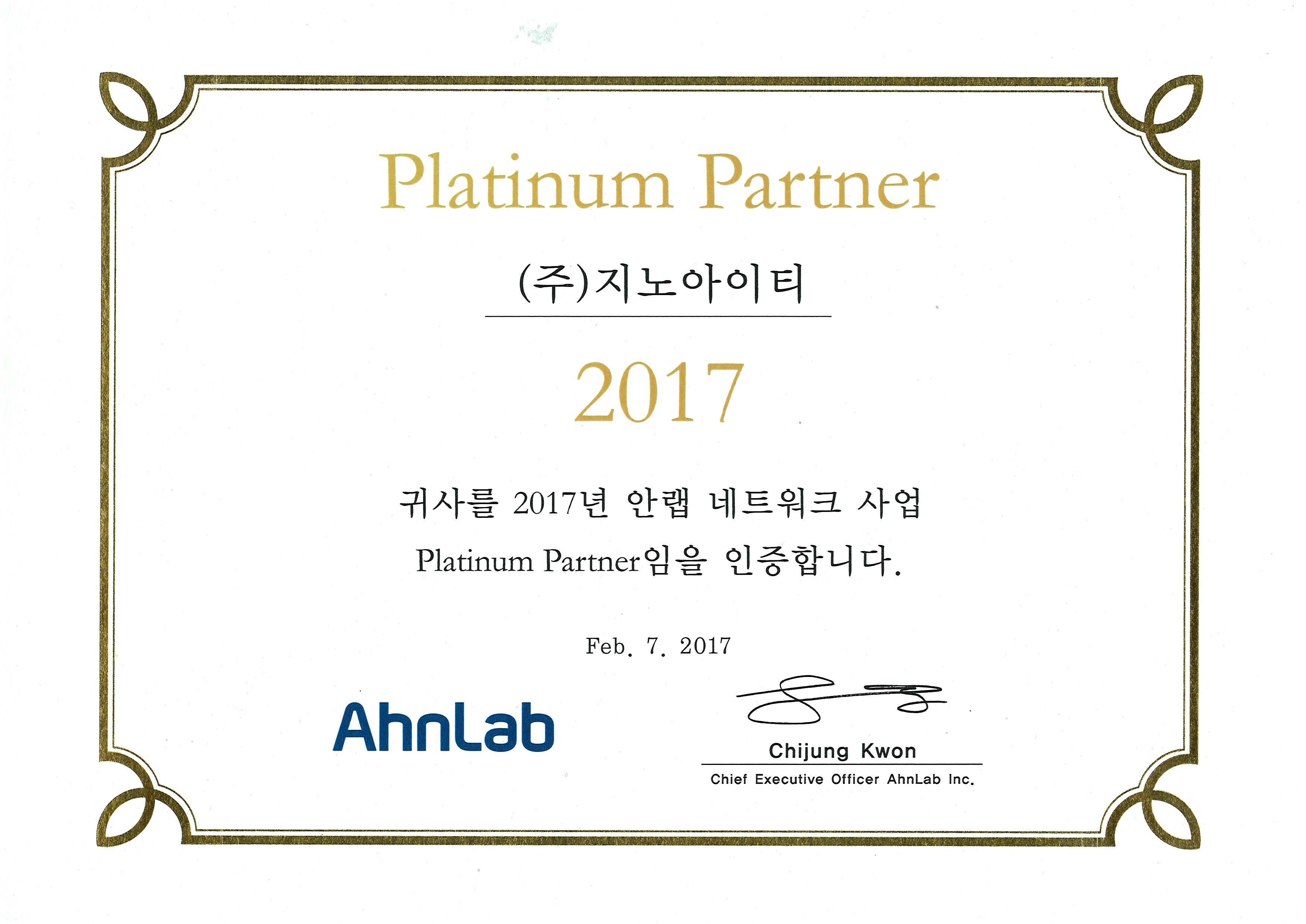 2017 AhnLab Platinum ÆÄÆ®³Ê ÀÎÁõ ȹµæ